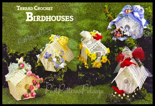 Vintage Thread Crochet Pattern Decorative Lace Birdhouses PDF Instant Digital Download 5 Designs For Centerpiece or Hanging Bird Houses