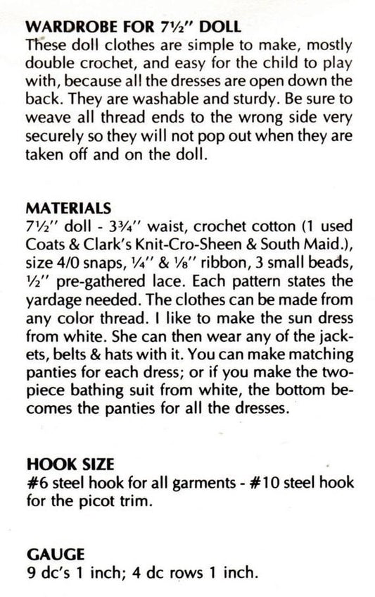 Vintage Thread Crochet Pattern Doll Party Clothes Outfits for 7 to 8 Inch Dolls PDF Instant Digital Download Complete Wardrobe & Accessories