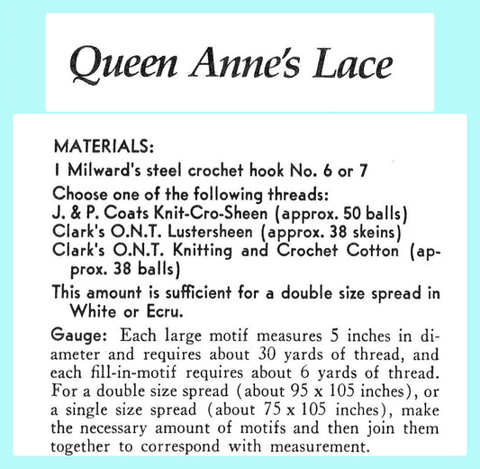 Vintage Thread Crochet Pattern Pretty Queen Anns Lace Motif Bed Spread PDF Instant Digital Download Heirloom Bedspread Cotton Coverlet