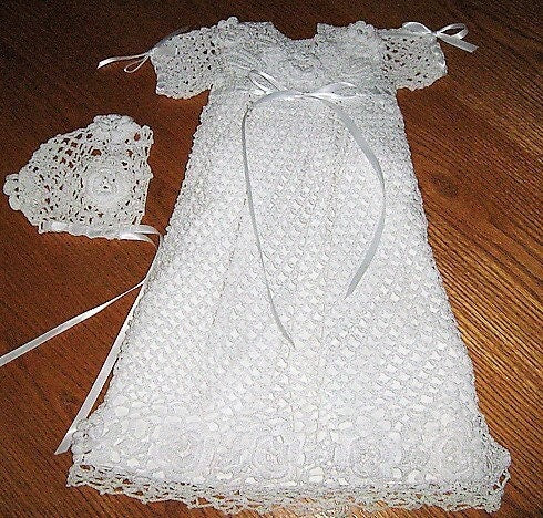 Vintage Thread Crochet Pattern Pretty Baby Girl Christening Dress Bonnet Set Rose & Leaf Motif Picots PDF Instant Digital Download Baptism