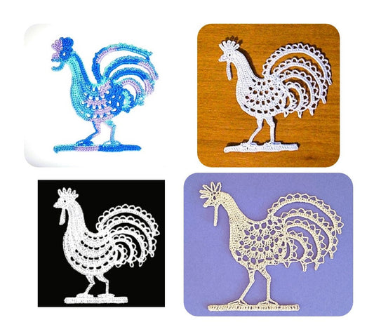 Vintage Thread Crochet Pattern Mini 3" Rooster Chicken Applique Lacy Embellishment PDF Instant Digital Download Workbook