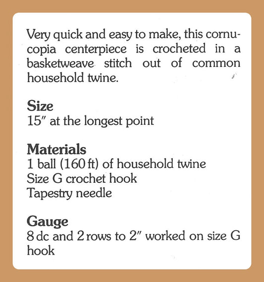 Vintage Crochet Pattern 15" Thanksgiving Cornucopia Centerpiece Quick Easy Beginners PDF Instant Digital Download Twine Horn of Plenty