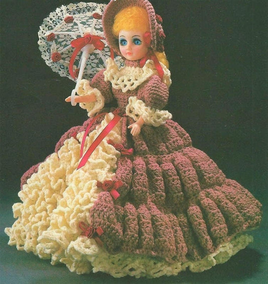 Vintage Crochet Pattern 15" Southern Belle Fashion Doll Outfit Ruffled Petticoat Dress PDF Instant Digital Download 10 Ply