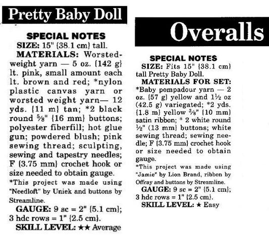 Vintage Crochet Pattern 15" Girl Baby Doll and Clothing Soft Sculpture Dolly Amigurumi 5 Outfits PDF Instant Digital Download 10 Ply
