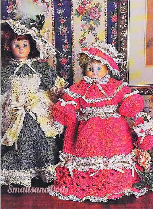 Vintage Crochet Pattern 15" Victorian Doll Dresses Outfits PDF Instant Digital Download Rosebud Easy Beginner 4 Ply 10 Ply