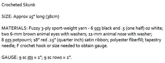 Vintage Crochet Pattern 15" Skunk PDF Instant Digital Download Crocheted Pet Skunk Amigurumi Plush Stuffed Soft Toy Realistic Animal 3 Ply