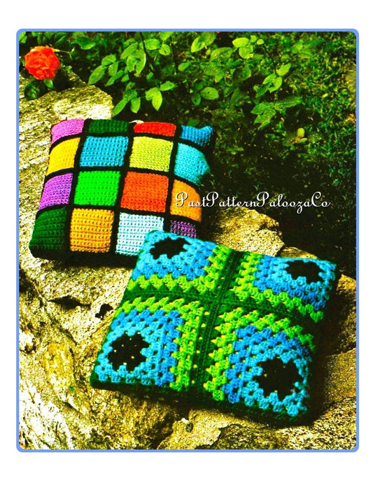 Vintage Crochet Pattern Granny Square Pillows Retro Boho Throw Cushions PDF Instant Digital Download Fun Home Decor Scrap Yarn Project