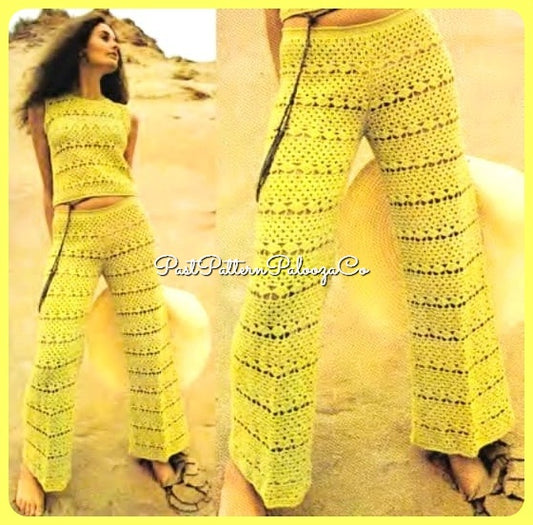 Vintage Crochet Pattern Groovy Lace Trouser Suit Patio Set Pantsuit PDF Instant Digital Download 70s Boho Shells Pants Summer Top Outfit