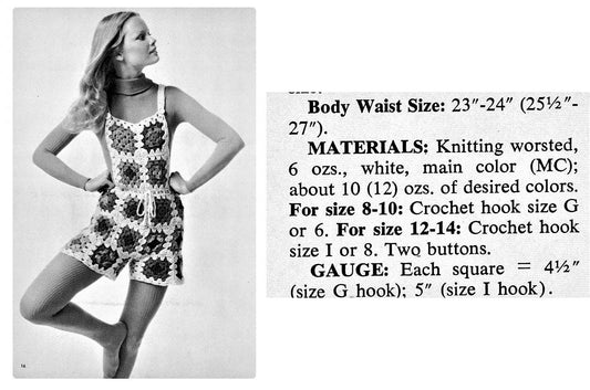 Vintage Crochet Pattern Granny Squares Shortalls Overalls PDF Instant Digital Download Retro 70s Boho Bib Shorts Groovy Hippie Wear