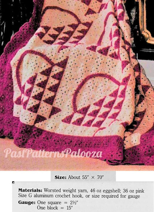 Vintage Crochet Pattern Hand Baskets Afghan Granny Squares Country Quilt Block Design PDF Instant Digital Download 55x70 10 Ply