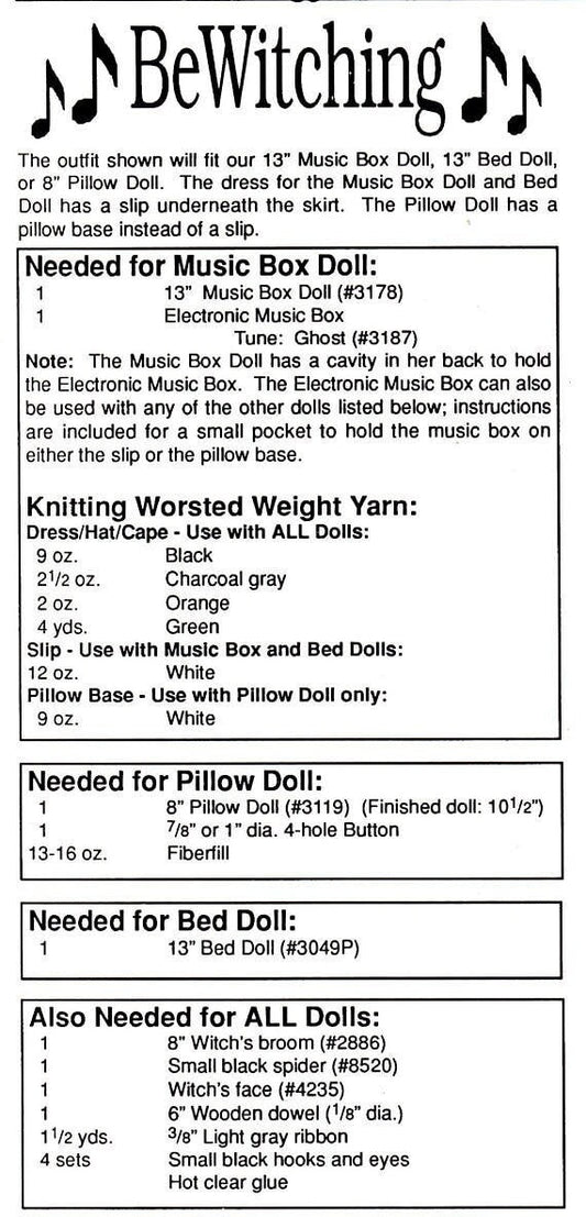 Vintage Crochet Pattern Halloween Witch Bed Doll Music Box or Pillow Doll 13 Inch PDF Instant Digital Download 13" Dress Outfit Hat 10 Ply