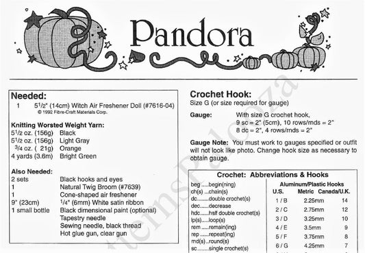Vintage Crochet Pattern Halloween Witch Air Freshener Bed Doll Pumpkin Dress PDF Instant Digital Download Pandora 10 Ply