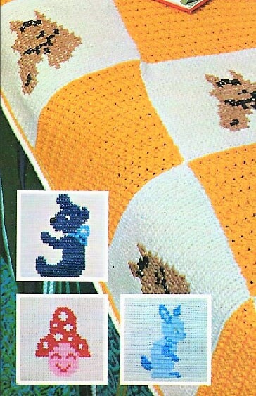 Vintage Crochet Pattern Kids Animal Squares Afghan PDF Instant Digital Download Childrens Horse Bunny Bear Twin Bed Blanket 10 Ply