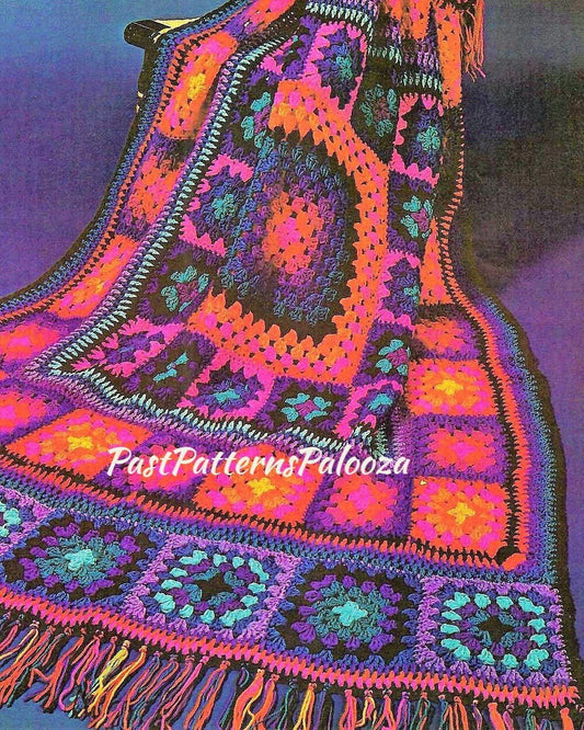 Vintage Crochet Pattern Jewel Tones Granny Squares Afghan PDF Instant Digital Download Boho Hippie Groovy Grannies Blanket 10 Ply