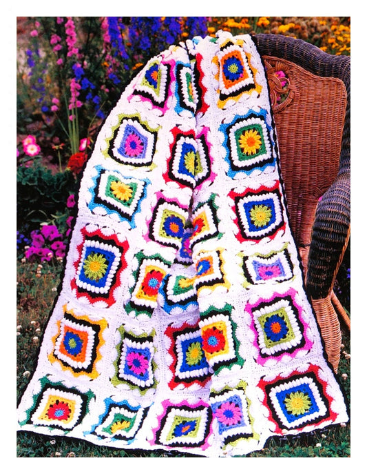 Vintage Crochet Pattern Jewel Flower Granny Square Afghan Blanket PDF Instant Digital Download 1970s Boho Floral Motif Throw 10 Ply