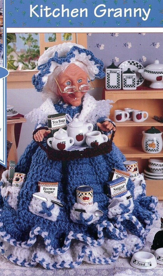 Vintage Crochet Pattern Kitchen Granny Air Freshener Doll Dress Bonnet PDF Instant Digital Download Crocheted Kitchen Caddy Doll