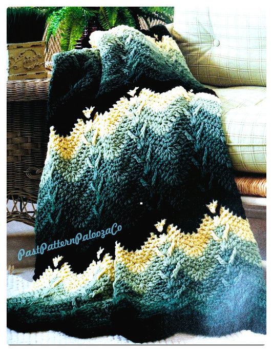 Vintage Crochet Pattern Majestic Mountains Forest Ripple Afghan PDF Instant Digital Download Wooded Mountainside Blanket Throw 48x64