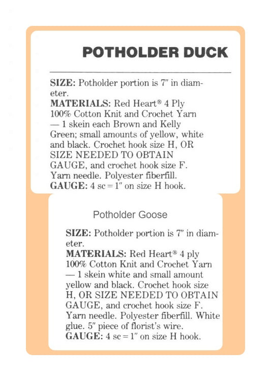 Vintage Crochet Pattern Mallard Duck and Country Goose Potholders PDF Instant Digital Download Cute Farmhouse Chic Oven Mitt Pot Holders