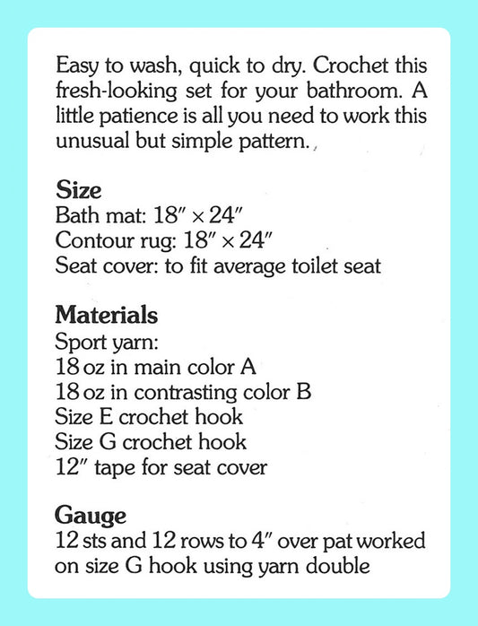 Vintage Crochet Pattern Loopy Bathroom Set Toilet Lid Cover Contour Rug Bath Mat PDF Instant Digital Download Quick Easy Loop Stitch 5 Ply