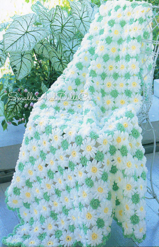 Vintage Crochet Pattern Mini Daisy and Leaf Motif Afghan PDF Instant Digital Download Floral Daisies Blanket 45x60 10 Ply