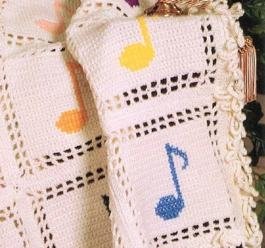 Vintage Crochet Pattern Music Notes Afghan Design PDF Instant Digital Download Musical Throw Blanket Cross Stitch Colorful Notes 10 Ply