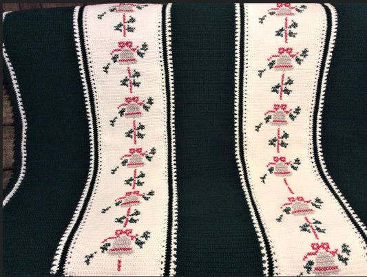 Vintage Crochet Pattern Silver Christmas Bells Afghan PDF Instant Digital Download Tunisian Stitch with Cross Stitch 48x67 10 Ply