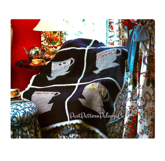 Vintage Crochet Afghan Tea Cups Tea Time Pattern PDF Instant Digital Download Tunisian Teacups Cross Stitch Design 45x65 5 Ply
