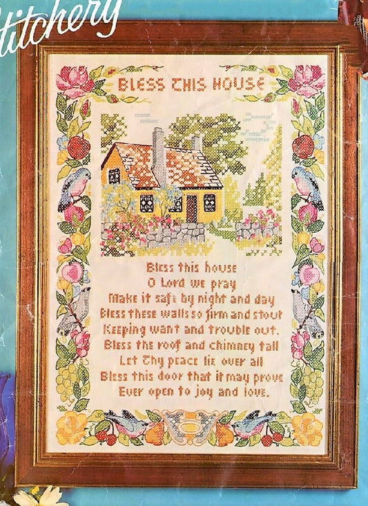 Vintage Cross Stitch Pattern Bless This House Prayer PDF Instant Digital Download Embroidery Needlepoint Home Blessings 12x14