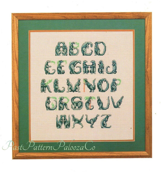 Vintage Cross Stitch Pattern Dinosaur Alphabet Font ABCs PDF Instant Digital Download Fun Prehistoric Letters Embroidery