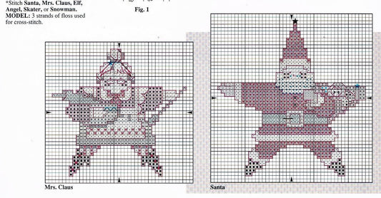 Vintage Cross Stitch Pattern Star Shaped 6" Classic Christmas Character Ornaments PDF Instant Digital Download Santa Snowman Angel Tree Trim