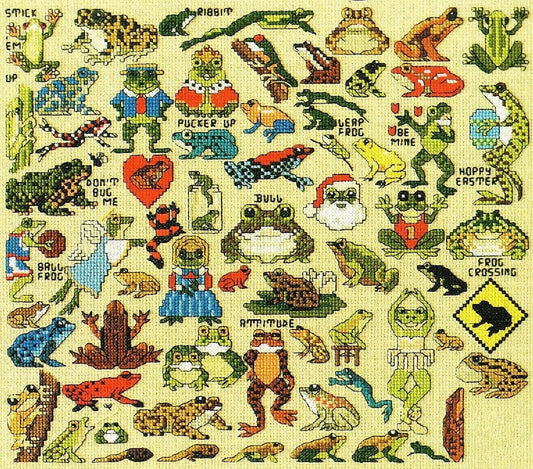 Vintage Cross Stitch Patterns Cute Mini Frog Motifs PDF Instant Digital Download Embroidery Kitsch Quirky Froggy Love Designs A1