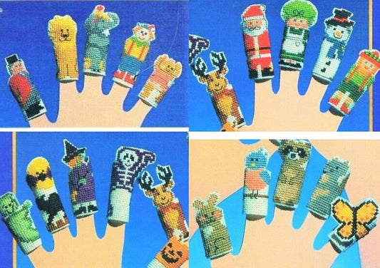 Vintage Cross Stitch Patterns Fabric Holiday Finger Puppets PDF Instant Digital Download Halloween Christmas Forest Animals Circus