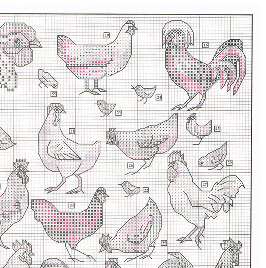 Vintage Cross Stitch Patterns Mini Chickens Motifs PDF Instant Digital Download Embroidery 59 Hen Rooster Farm Fowl Designs A1