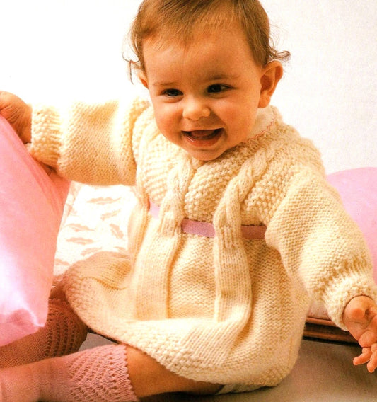 Vintage Knitting Pattern Baby to Toddler Girl Dress With Cabled Yoke PDF Instant Digital Download Sleeveless 9 Months - 2 Years 12 Ply