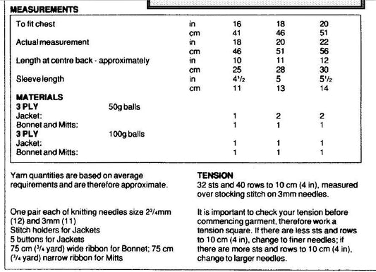 Vintage Knitting Pattern Pretty Baby Girl Matinee Jackets Bonnet Mittens Set PDF Instant Digital Download 0-18m 3 Ply