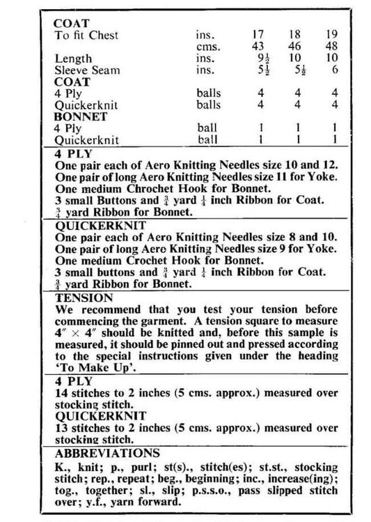 Vintage Knitting Pattern Pretty Baby Girl Matinee Coat and Bonnet Set PDF Instant Digital Download 0-12m 4 Ply Quickerknit