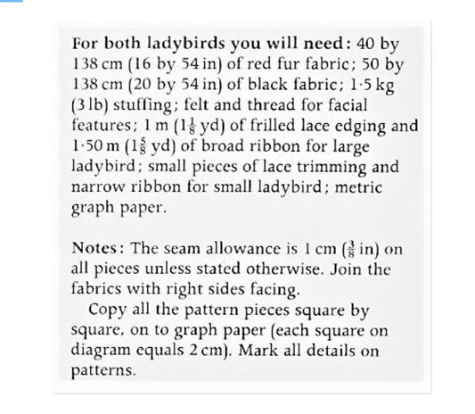 Vintage Sewing Pattern Large 18" Mama Ladybug and 9" Baby Soft Sculpture Toys Red Fur Fabric PDF Instant Digital Download Ladybird Pillow