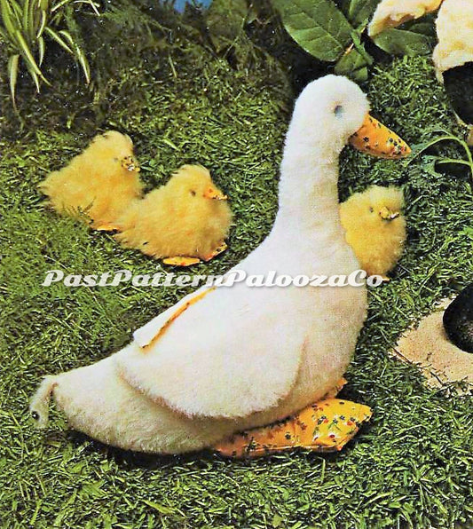 Vintage Sewing Pattern 15" Mother Duck and 4" Baby Duckings Soft Sculpture Plush Toys PDF Instant Digital Download Realistic Faux Fur Fabric