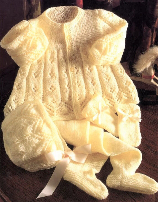 Vintage Knitting Pattern Knit Baby to Toddler Girl 4 Pc Pram Set Matinee Jacket Leggings Mitts Bonnet PDF Instant Digital Download 0 - 2 yrs