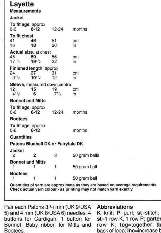 Vintage Knitting Pattern Knit Baby Girl 4 Pc Layette Set Matinee Jacket Mitts Bonnet Booties PDF Instant Digital Download 0-24m 8 Ply DK
