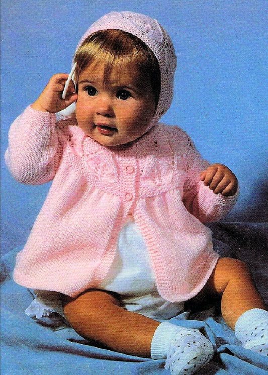 Vintage Knitting Pattern Knit Baby Girl to Big Girl Lacy Bonnet and Cardigan Sweater Set PDF Instant Digital Download 0-6 years DK 8 Ply