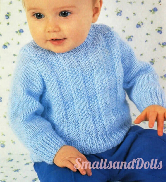 Vintage Knitting Pattern Classic Baby Round Neck Jumper Sweater PDF Instant Digital Download 0-2yrs DK 8 Ply
