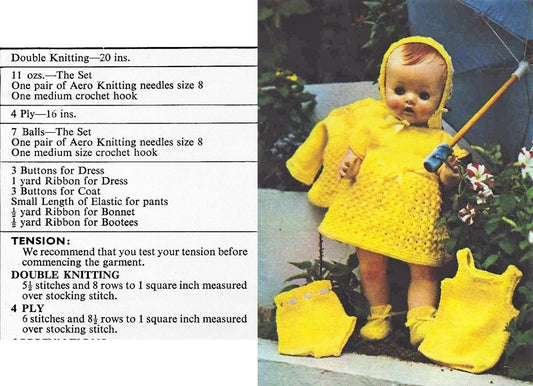 Vintage Knitting Pattern Doll Clothes for 16 and 20 Inch Baby Dolls 6 Piece Set PDF Instant Digital Download 16" 20" DK 8 Ply /4 Ply