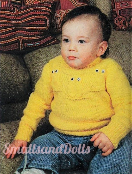 Vintage Knitting Pattern Baby Toddler Childs Owl Sweater Owl Stitch Yoke Pullover Jumper PDF Instant Digital Download 12m - 4 yrs 10 Ply