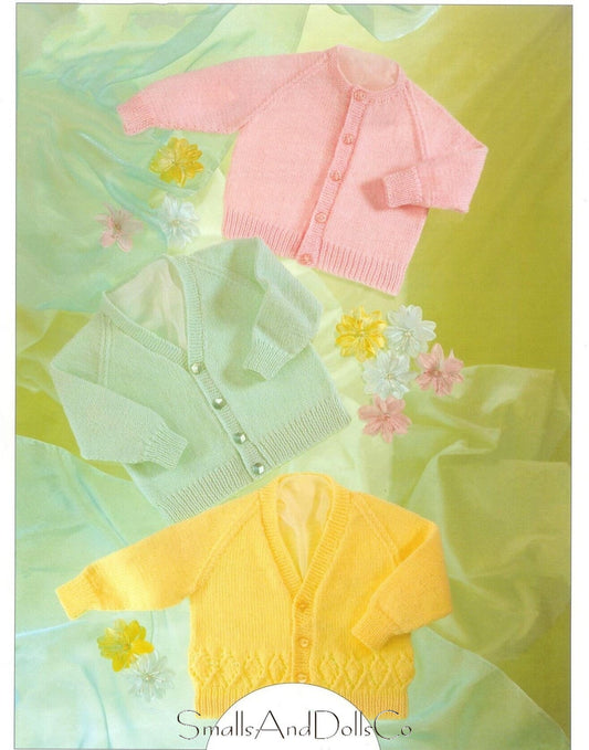 Vintage Knitting Pattern Baby to Child Classic Simple Cardigan Sweaters Jumpers 3 Styles PDF Instant Digital Download Preemie - 2 yrs 4 Ply