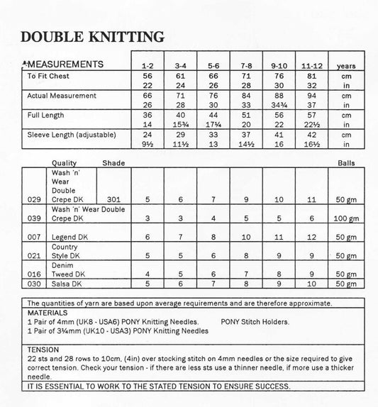 Vintage Knitting Pattern Baby to Childs Hooded Sweater Front Pocket PDF Instant Digital Download DK 1 - 12 Yrs