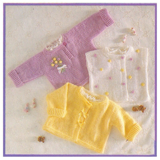 Vintage Knitting Pattern Knit Baby Girl Ribbon Cardigan Jacket Pullover Sweater Bolero Hat Set PDF Instant Digital Download 0-2 Yrs 8 Ply