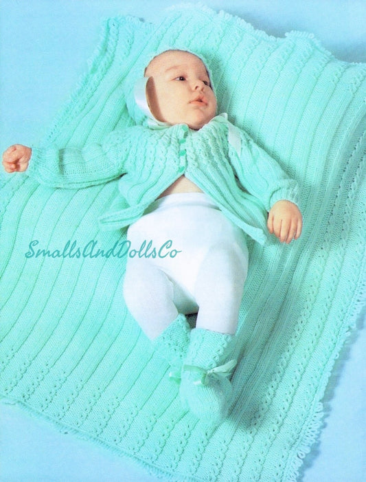 Vintage Knitting Pattern Cute Baby Layette Set 4 Pieces PDF Instant Digital Download Jacket Blanket Bonnet Booties 6-12m 12 Ply