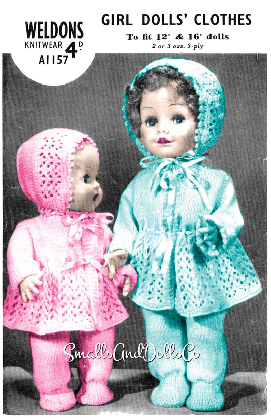 Vintage Knitting Pattern Doll Clothes 12 and 16 Inch Baby Dolls 3 Piece Sets Coat Bonnet Leggings PDF Instant Digital Download 3 Ply