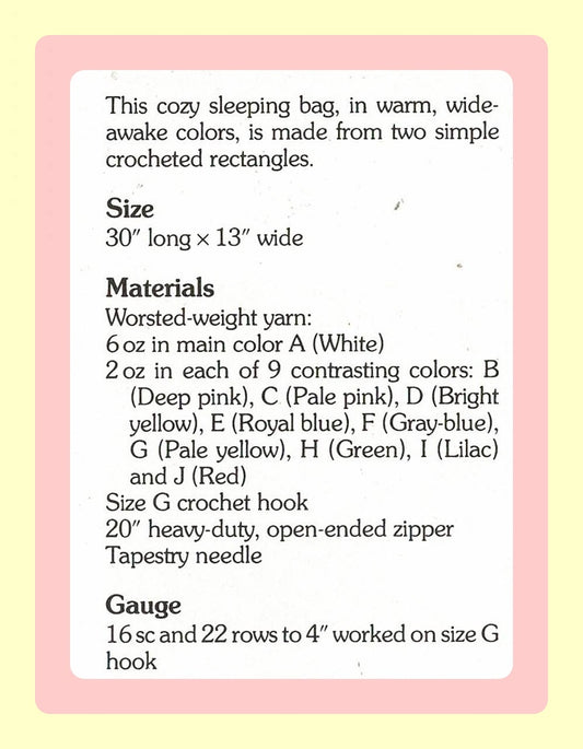 Vintage Crochet Pattern Striped Baby Bunting Sleeping Bag with Hood PDF Instant Digital Download Quick Easy Front Zipper Sleep Sack 10 Ply